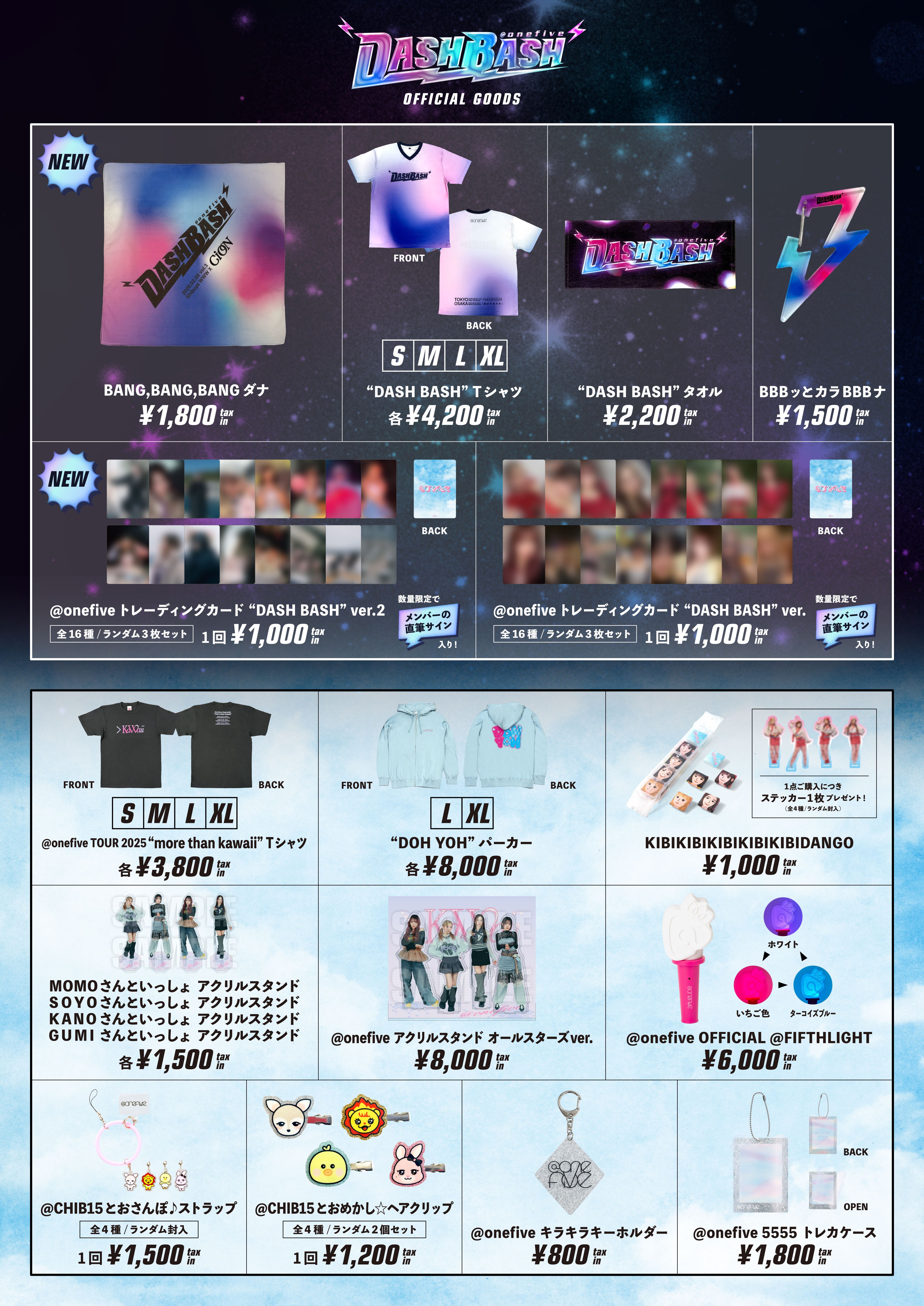2月8日(日)10:30より、アーティストオンラインショップ「A!SMART(アスマート)」にて、「BANG,BANG,BANGダナ」と「@onefiveトレーディングカード “DASH BASH” ver.2」の販売開始を予定しております。