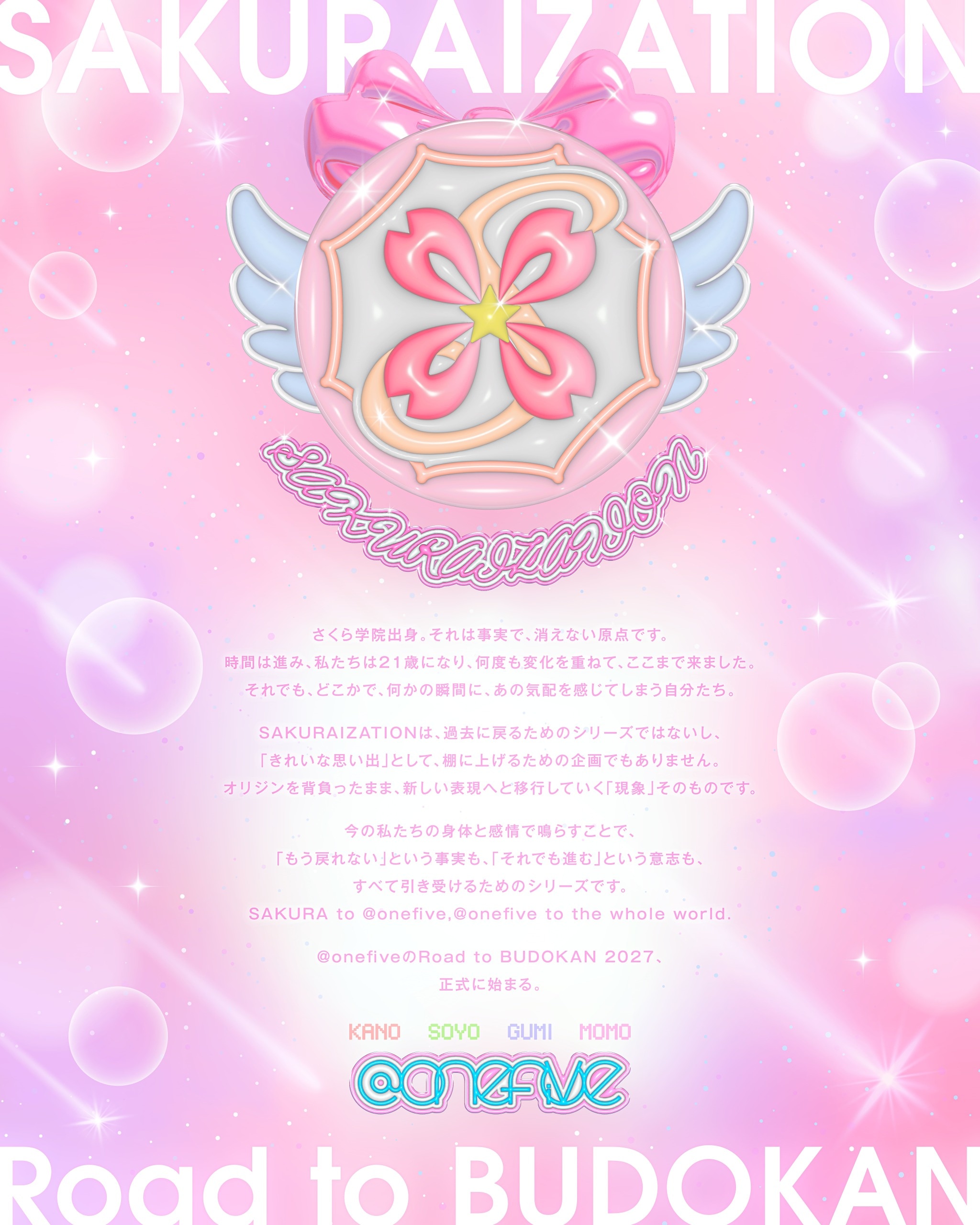 2027年の日本武道館公演を目指すと宣言した@onefiveが、自らのオリジン(原点)を背負い、次なる表現へと昇華させる新プロジェクト「SAKURAIZATION(サクライゼーション)」を始動。