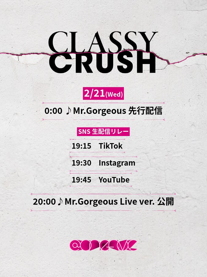 メジャー1stアルバム 「#ClassyCrush 」 リリース決定 & 「#MrGorgeous」 先行配信記念 SNS生配信リレー