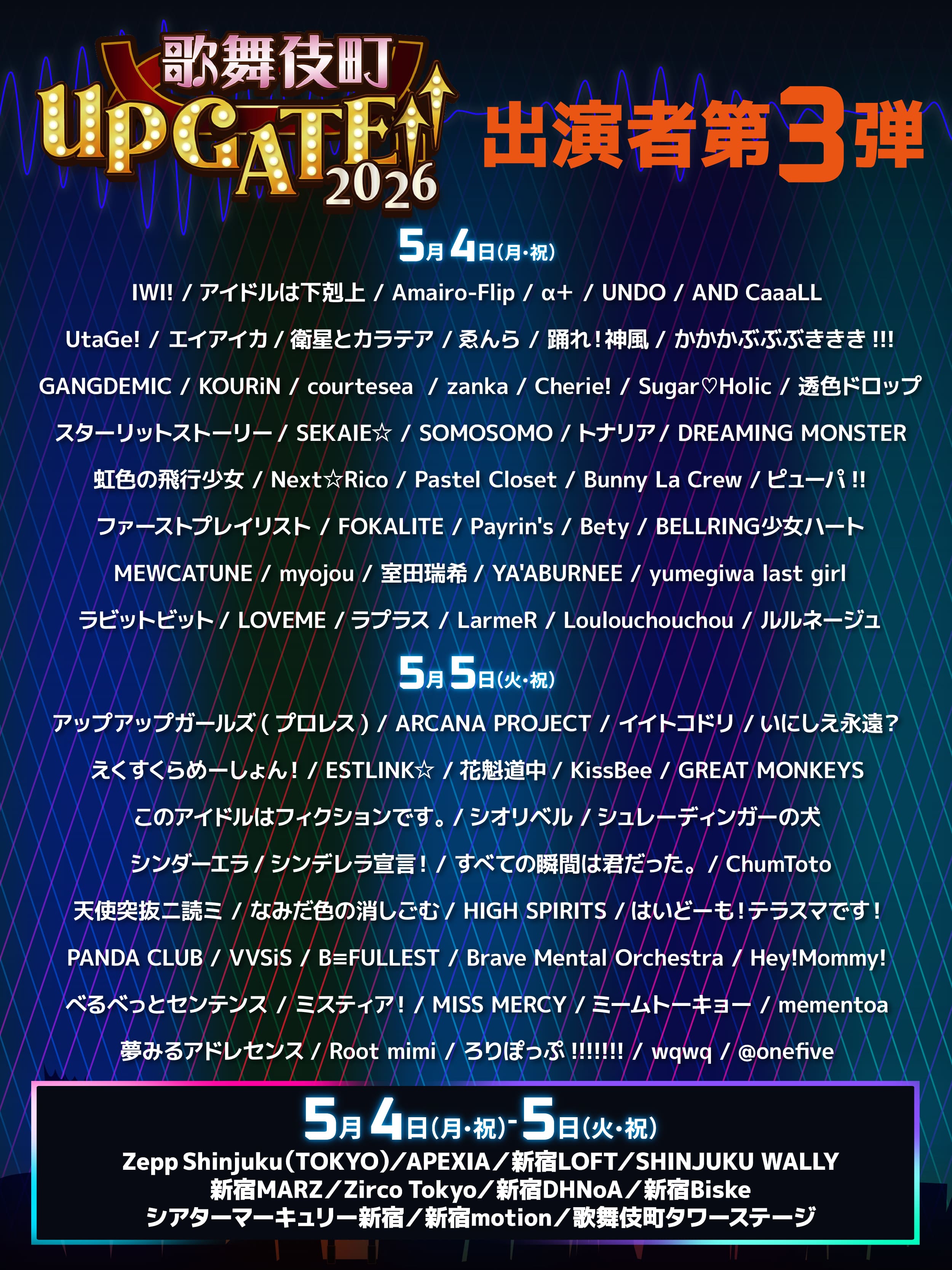 会場:Zepp Shinjuku(TOKYO)/APEXIA/新宿LOFT/SHINJUKU WALLY/新宿MARZ/Zirco Tokyo